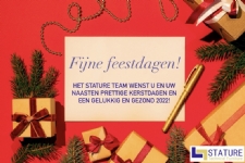 Wij willen u bedanken voor de fijne samenwerking en het vertrouwen in ons het afgelopen jaar. Om weer uitgerust en fris te beginnen in het nieuwe jaar is Stature tussen 24 december en 3 januari gesloten. Het Stature team wenst u en uw naasten hele fijne feestdagen en een fantastisch, maar vooral gezond 2022 toe!